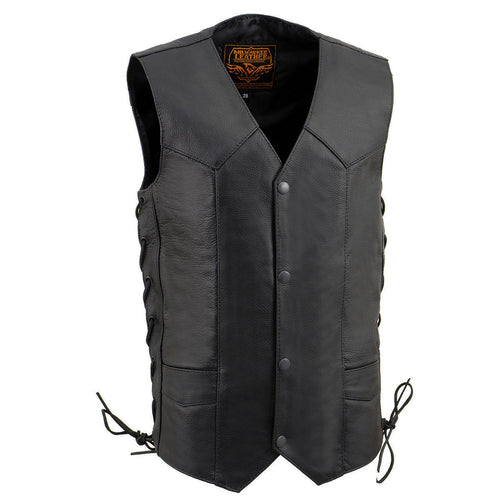 Motorcycle vests portray that image of the classic biker look, with the cool leather chaps, fingerless gloves, riding down an open road with no cares or worries to be had. A black leather biker vest is a great addition to any Harley rider's gear collection, while a high-viz will keep you safe and sound at night or in the rain. So whether you're looking for matching MC biker vests for your charter or just want something that matches your boots and chaps, Milwaukee Leather has the right motorcycle vest for you, at the lowest prices online. Milwaukee Leather is also one of the few online stores that carry Heated Vests, and Concealed Carry Vests. On our line of Concealed Carry Vests you can always make sure you have your gun or weapon of choice ready at a moments notice.