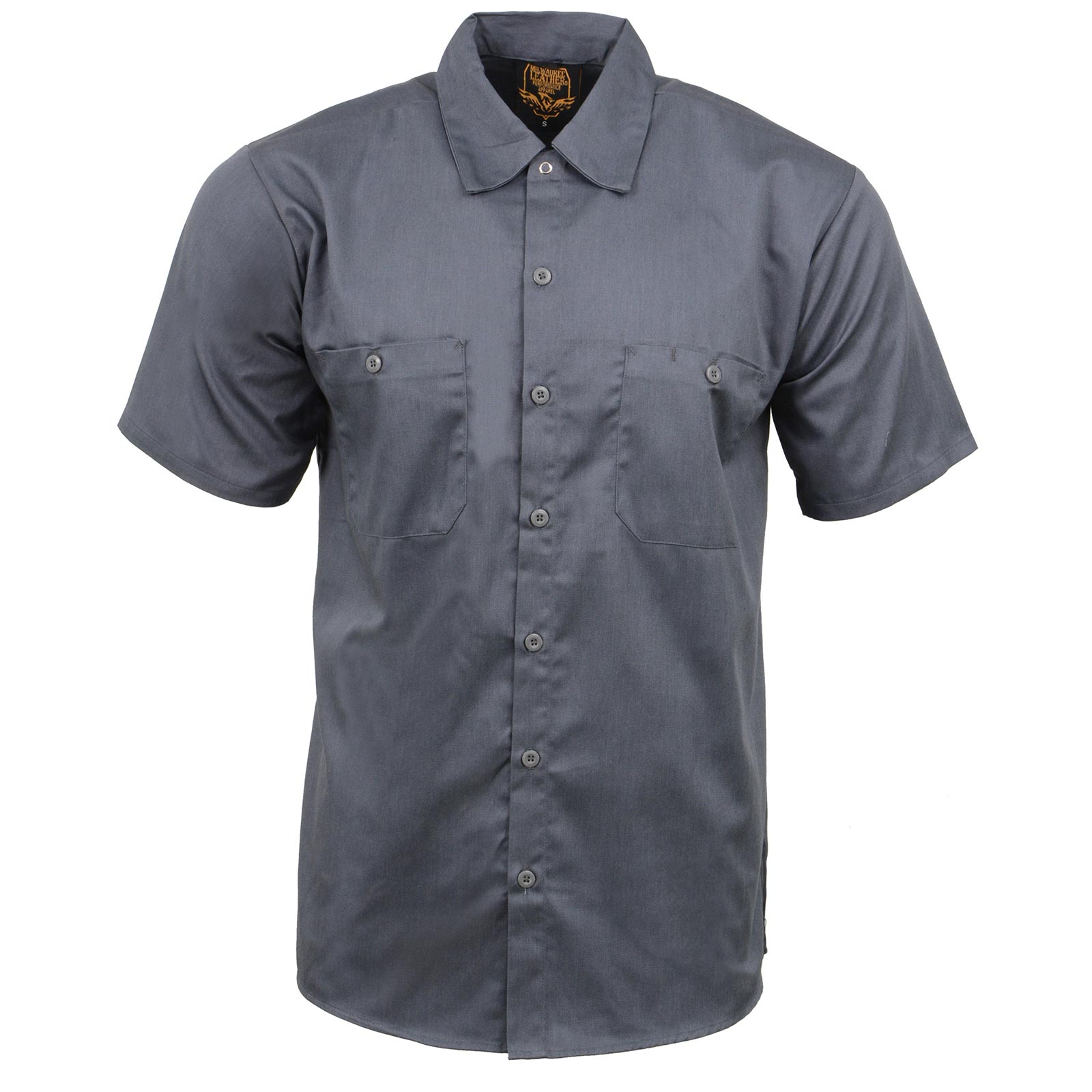 Milwaukee Leather Men’s Classic Button-Up Mechanic Durable Work Shirt - Short Sleeve Cotton Twill Garage Shirt