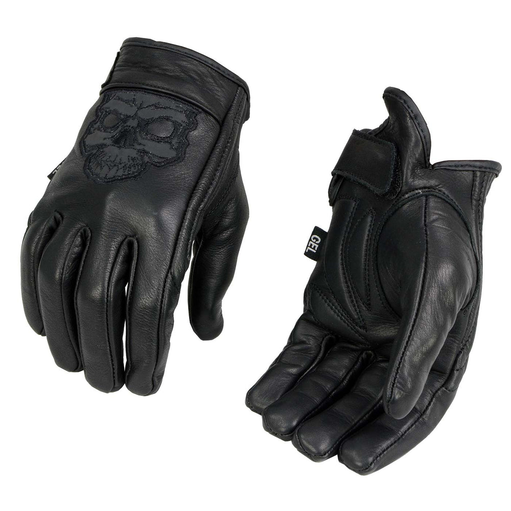 Milwaukee Leather MG7570 Men’s Reflective Skull Premium Leather Short Wrist Gel Palm Driving Gloves