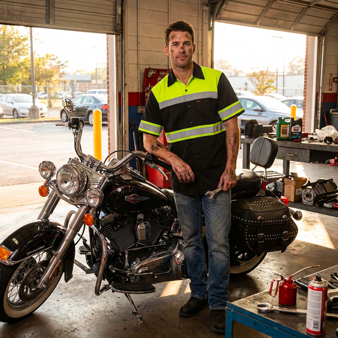 Built for wrench time and throttle time — tough, breathable, and clean enough for the after‑ride.