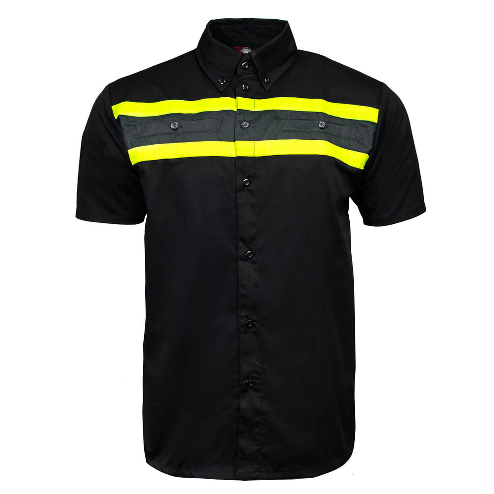 MMCC MMC16007 Men's "Petro" Mechanic Button Up Shop Shirt, Reflective Strip, Dual Chest Pockets - Black-Grey-Neon Green -