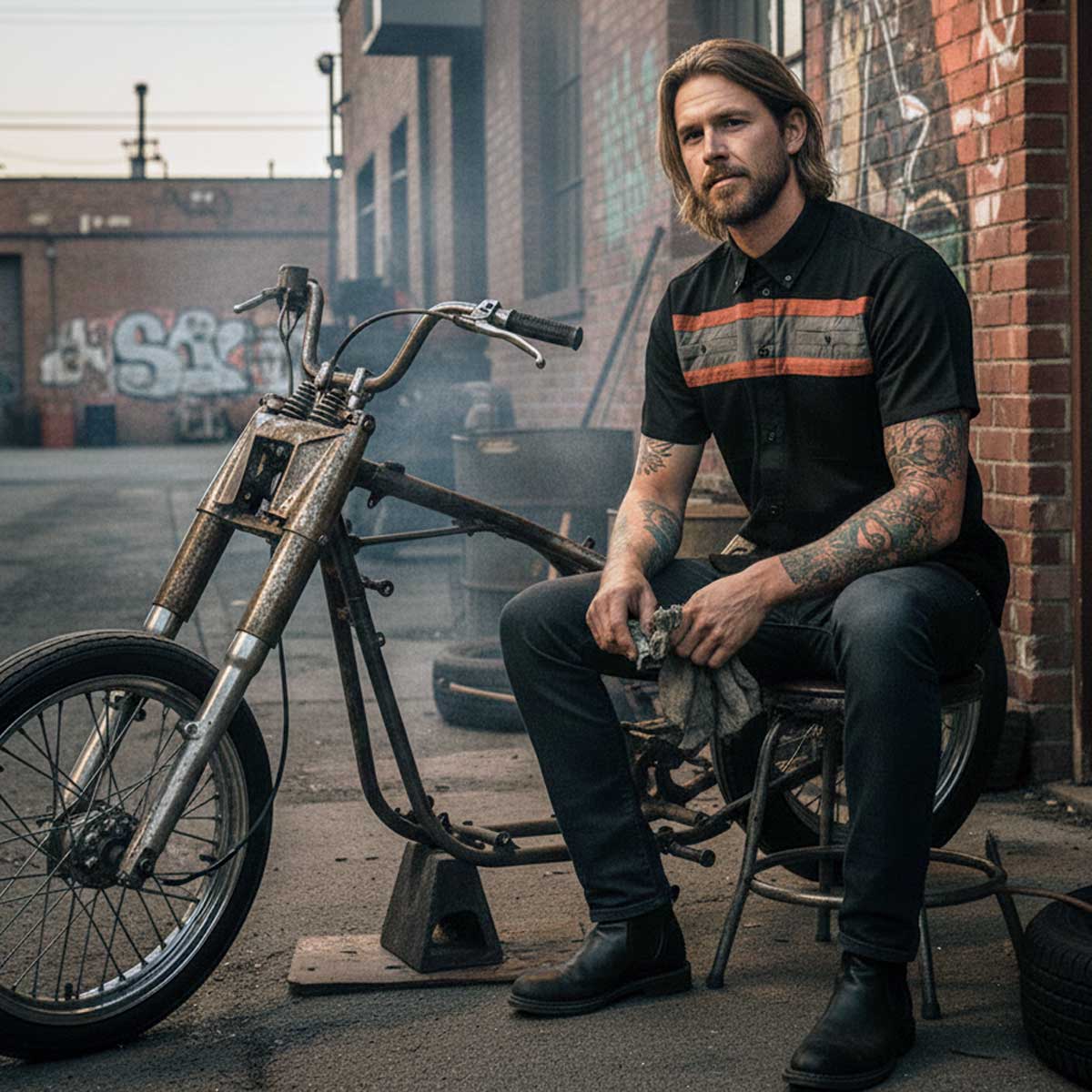 Built for wrench time and throttle time - tough, breathable, and clean enough for the after-ride.