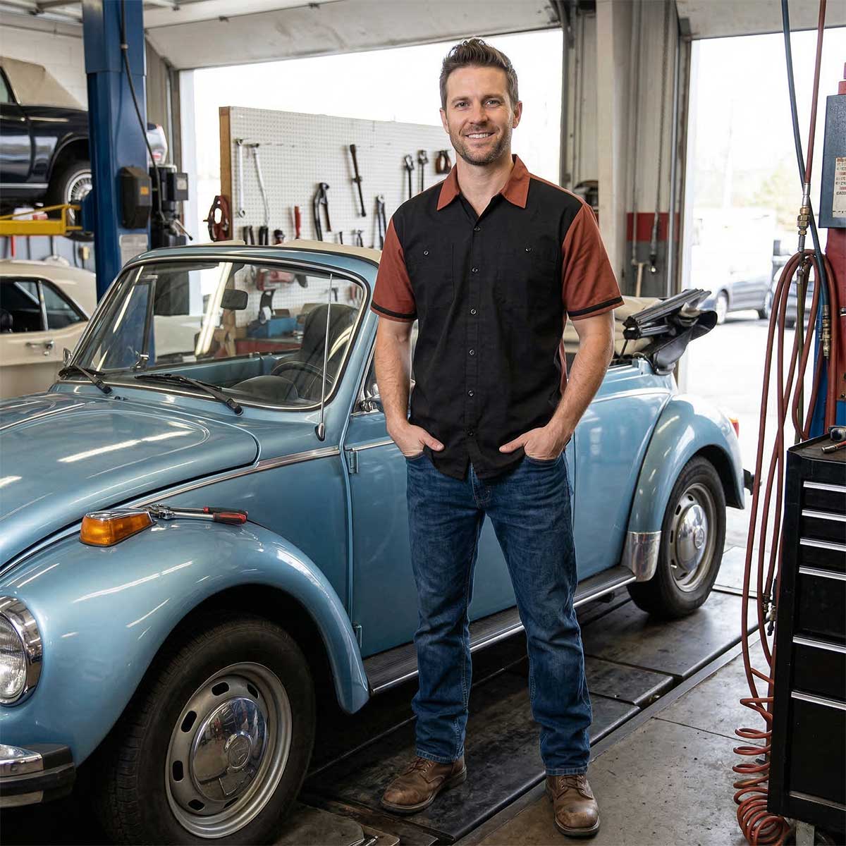 • Short sleeve mechanic button-up shirt